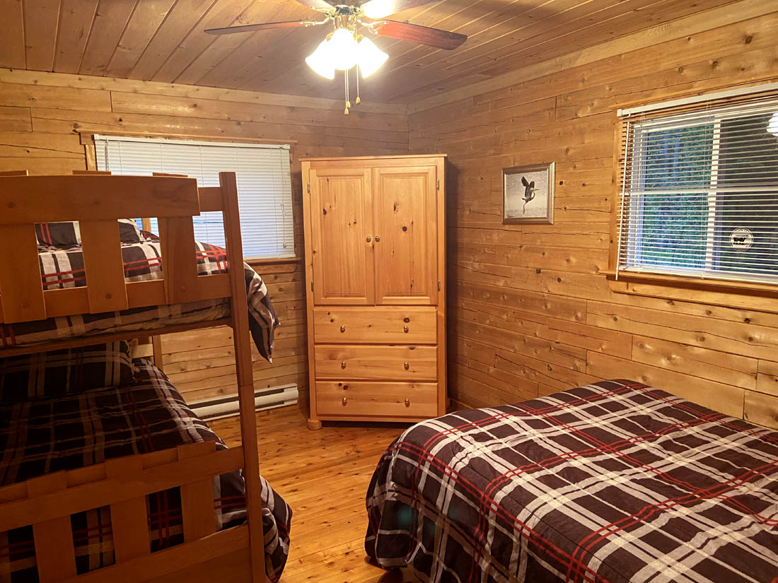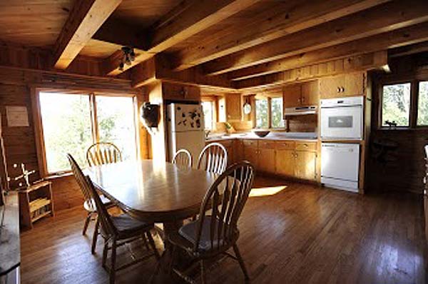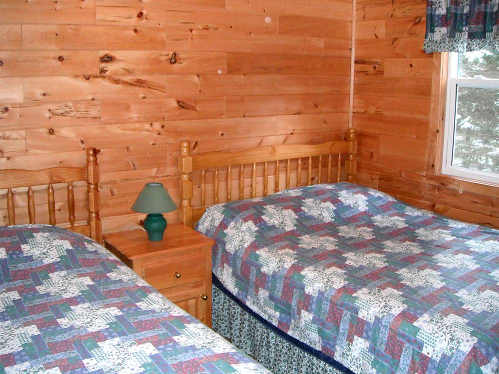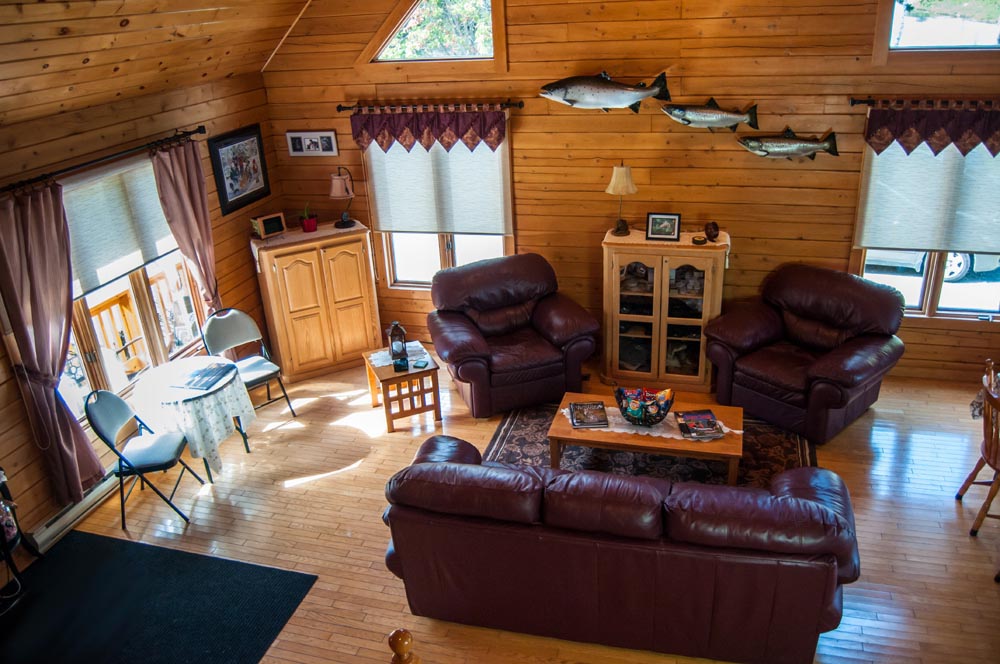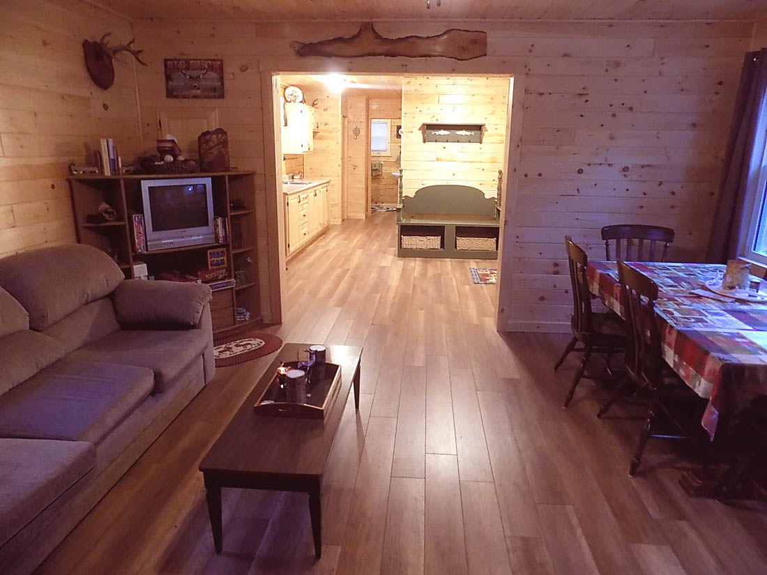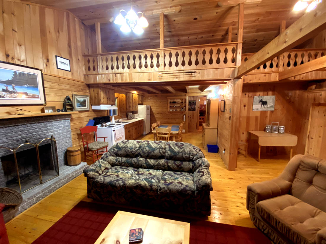 Miramichi Country Haven - quality vacation accommodations in New Brunswick, Canada Half Way Lodge - 2 Bedroom Wilderness Cottage #7 - is located half way between Grand Lake Rd. highway 123 & the mouth of the Cains river 15 miles each way. The Wilderness Cottage #6 is a single level, 2 bedroom unit with 2 double beds and a double pull-out sofa, one bathroom, comfortable living room and modern equipped kitchen, overlooking the beautiful Cains River. Watch the Atlantic Salmon swim by.