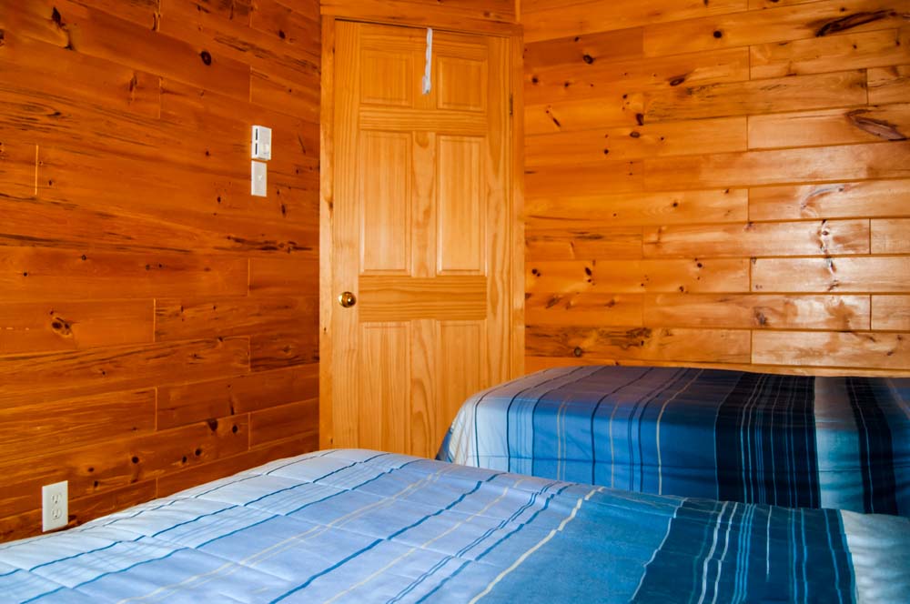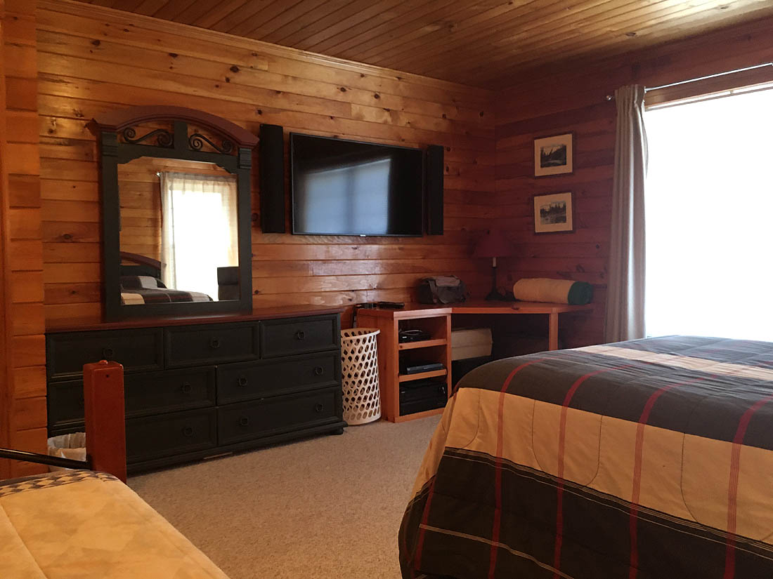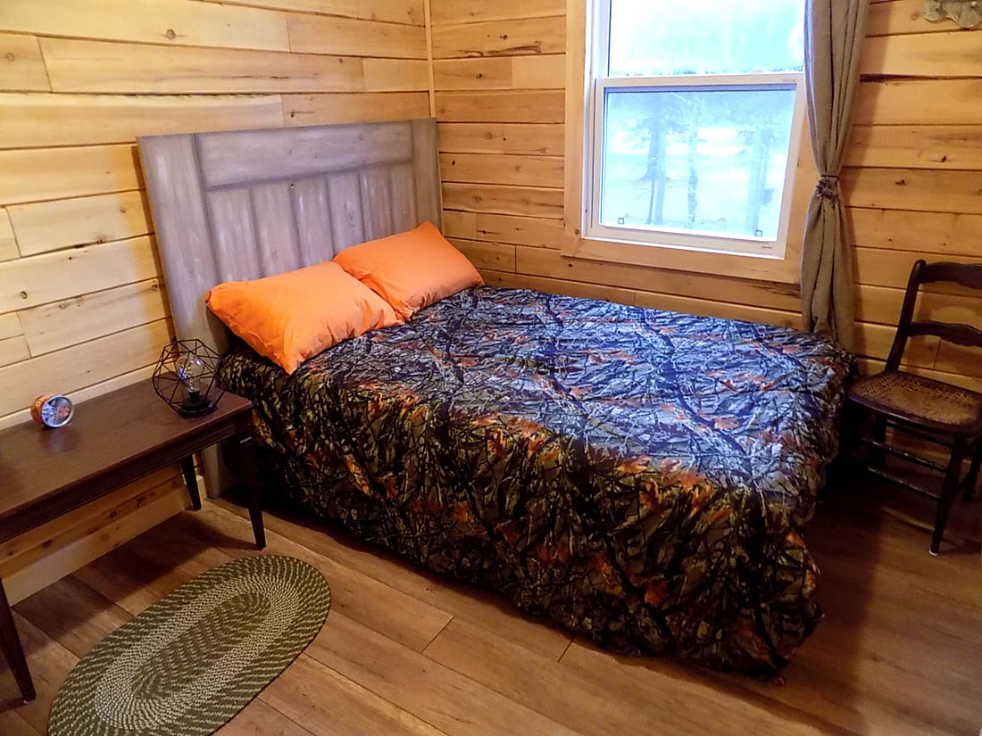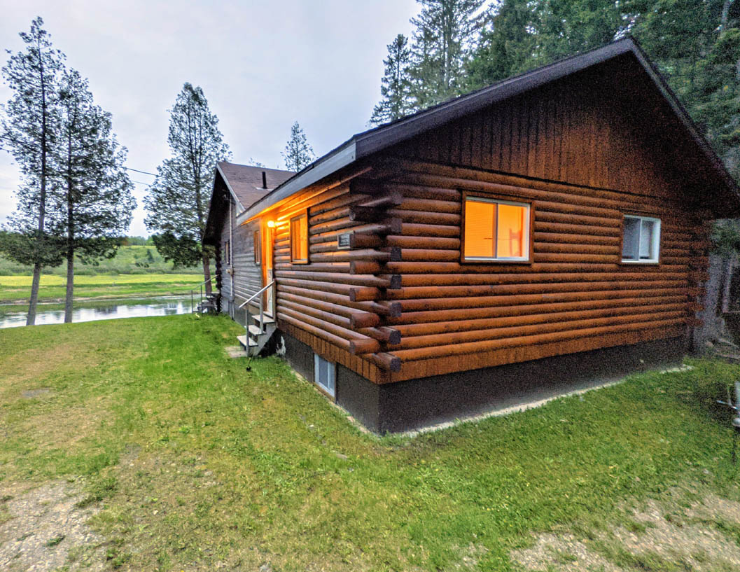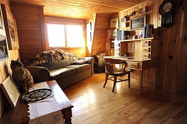 Miramichi Country Haven - quality vacation accommodations in New Brunswick, Canada Half Way Lodge - 2 Bedroom Wilderness Cottage #7 - is located half way between Grand Lake Rd. highway 123 & the mouth of the Cains river 15 miles each way. The Wilderness Cottage #6 is a single level, 2 bedroom unit with 2 double beds and a double pull-out sofa, one bathroom, comfortable living room and modern equipped kitchen, overlooking the beautiful Cains River. Watch the Atlantic Salmon swim by.