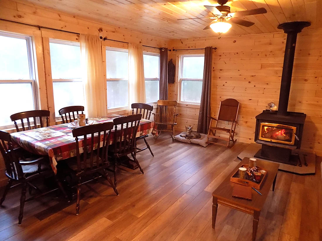 Miramichi Country Haven - quality vacation accommodations in New Brunswick, Canada 4 Bedroom Cottage #4 - Cottage #4 - This Cottage offers 4 star accommodations, spacious living & dining room, fully equipped modern kitchen with everything for Self-Catering, Screened-in Deck, Fire pit and riverside tables & Chairs. With it's location at Orr pool - one of the best Private Atlantic Salmon pools on the Miramichi - Fishing is the number one activity but this cottage is also ideal for hiking, tubing, Canoeing/Kayaking, touring and a number of other activities and all equipment can be arranged if interested.