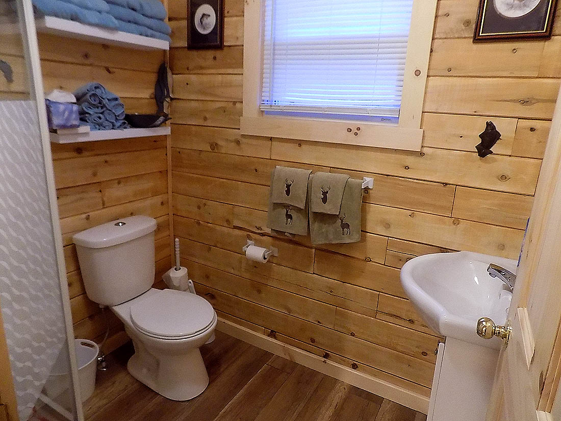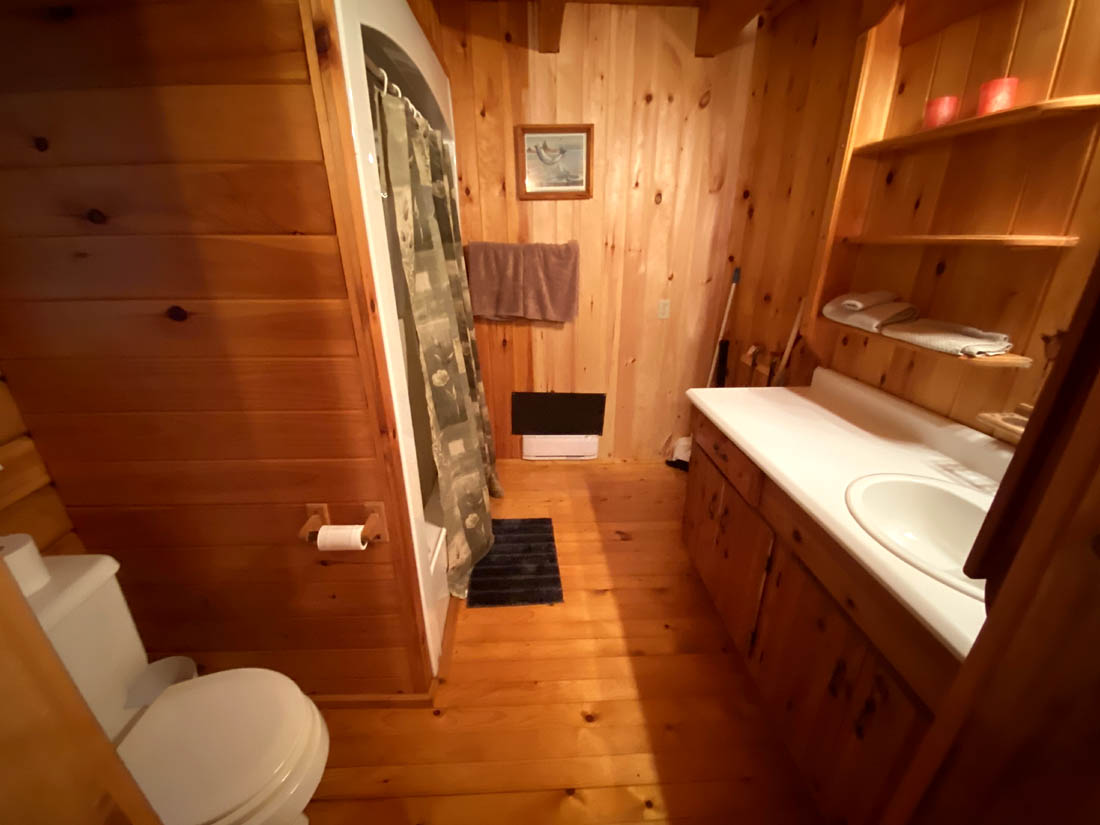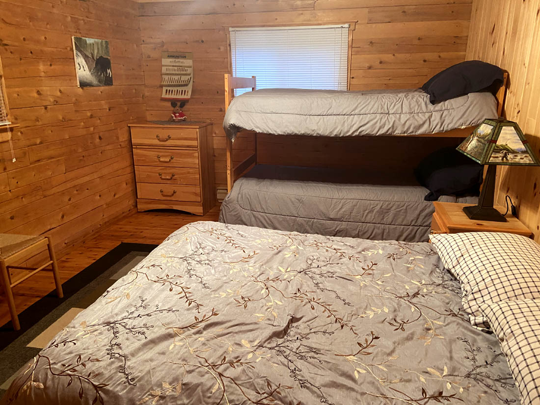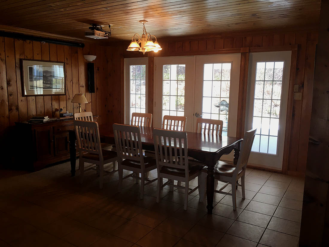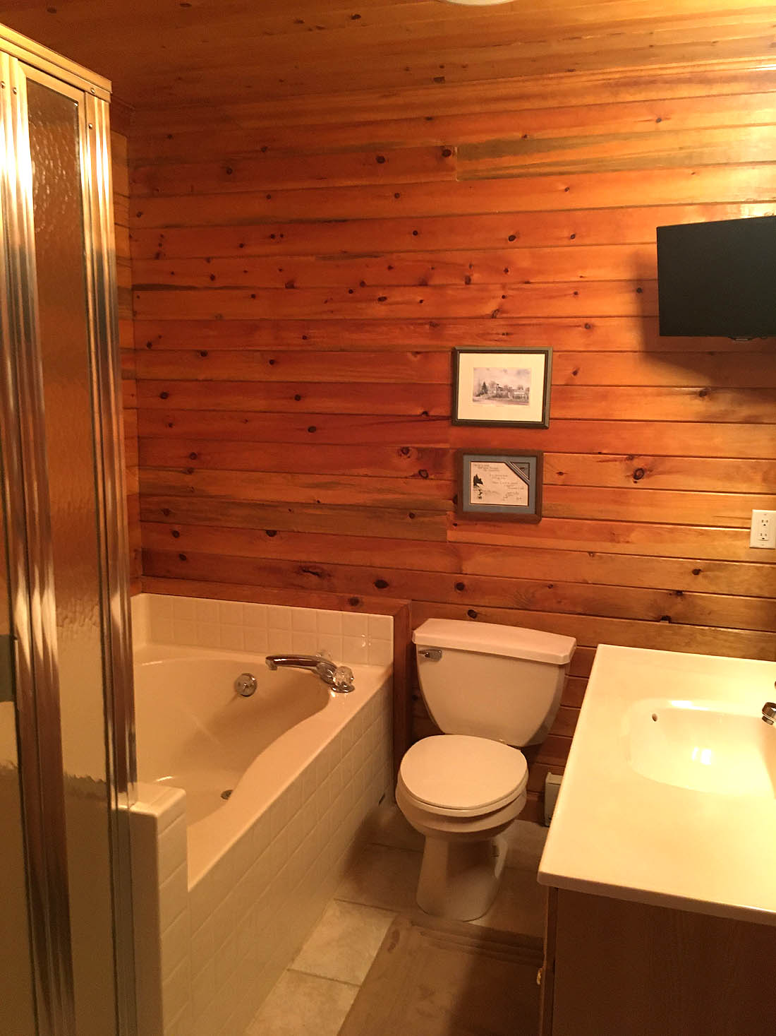 Miramichi Country Haven - quality vacation accommodations in New Brunswick, Canada 5 Bedroom Cottage #1 - Cottage # 1 is a spacious Mult-Level unit with 5 bedrooms, seven beds, modern washrooms and Jacuzzi. This cottage has a large living room, well-equipped kitchen, laundry room, recreation room with pool table & exercise equipment, large flat-screen TV, two outside decks, it's own screened-in Gazebo & firepit and a wonderful view of the famous Miramichi river. Ideal for larger family or group stays!