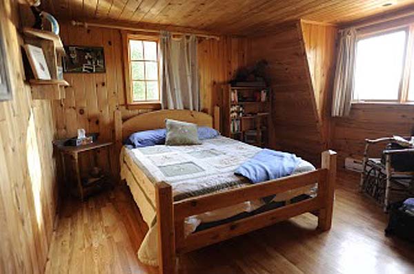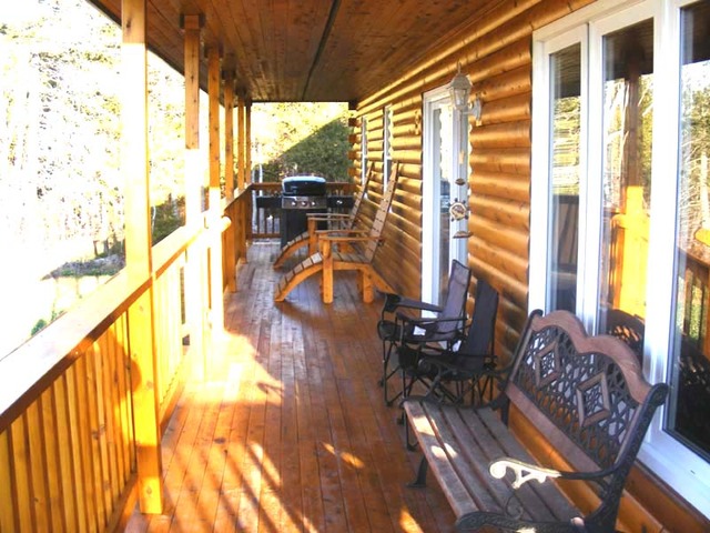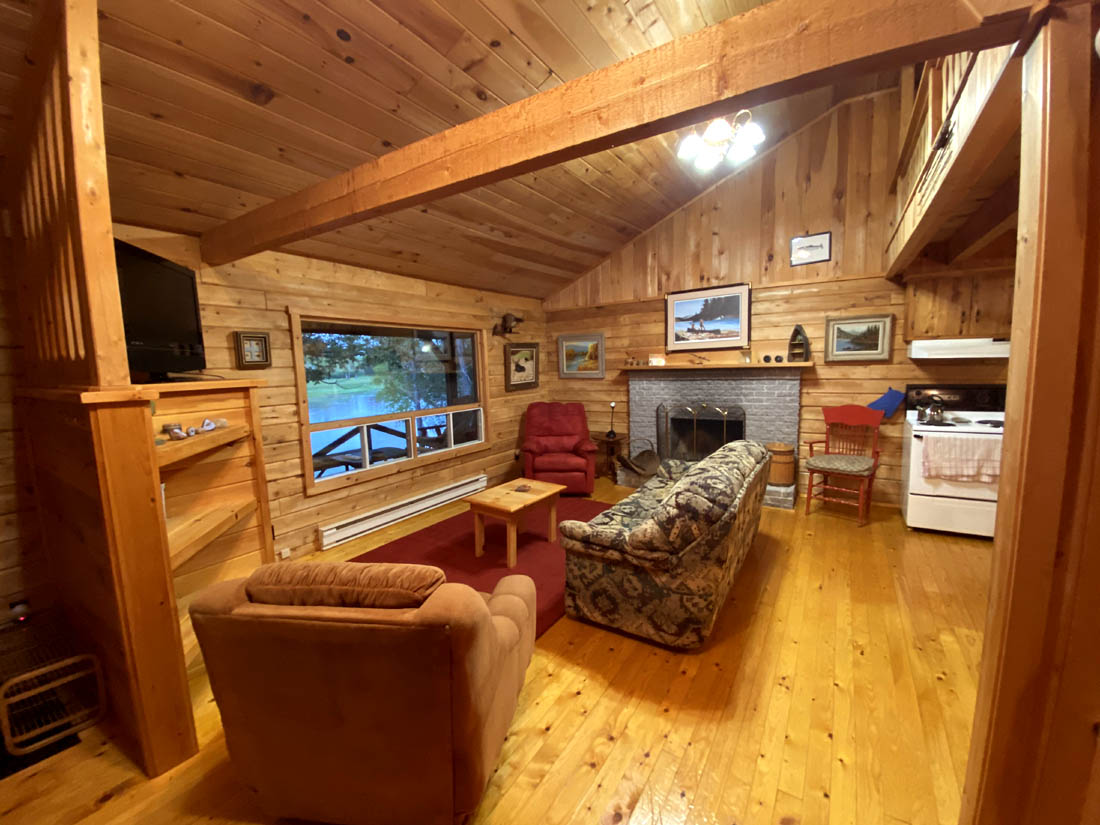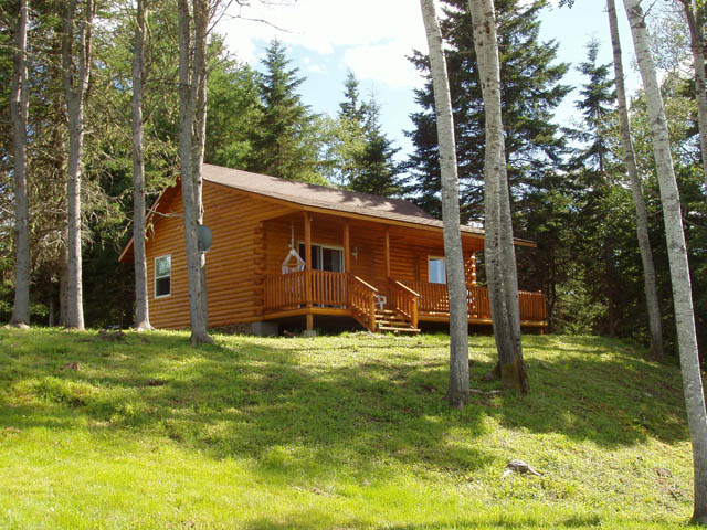 Miramichi Country Haven - quality vacation accommodations in New Brunswick, Canada 2 Bedroom Cottage #6 - - This Cozy Log Cottage offers space and comfort and is situated overlooking the Miramichi River. Two bedrooms and can sleep up to 8 guests. Well equipped with a modern washroom, electric stove & fridge, wood fireplace, screened spacious porch overlooking the river, and all the relaxation and privacy you wish for. Canoe and Kayak rentals available and if you are an angler(s) well.. this is the Miramichi, the best Atlantic Salmon fishing anywhere! (and BIG Striped Bass too..!)