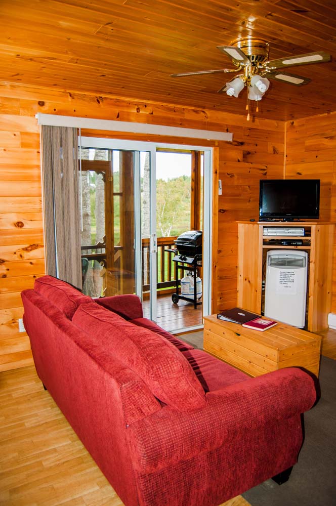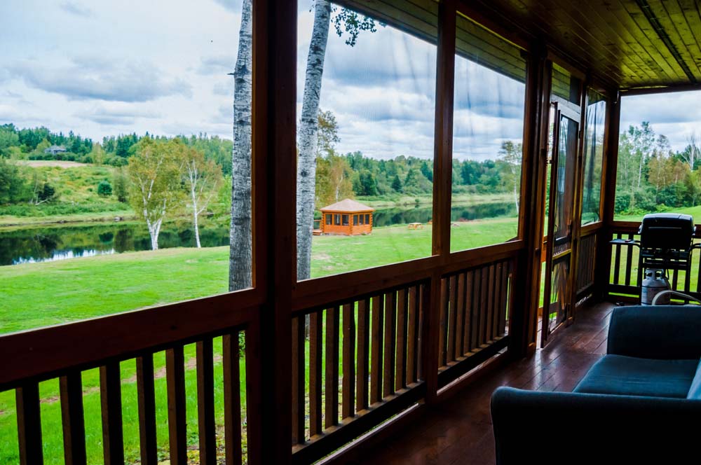Miramichi Country Haven - quality vacation accommodations in New Brunswick, Canada 2 Bedroom Cottage #5 - Cottage # 5 is a single level 2 bedroom unit with 4 beds and a pull-out sofa, one bathroom, comfortable living room and modern equipped kitchen with a screened-in deck overlooking the famous Miramichi river, outside furniture, screened-in gazebo and firepit.
