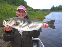 The Miramichi has an abundance of Wild Striped Bass in the system which can be fished using a number of different methods, but non much better than using a dry fly. We fish for them in the lower stretches of the system and tidal water from Mid may on.